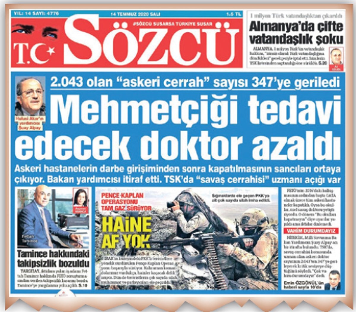 Bir süre önce İskenderun Deniz Er Eğitim Alayı’nda aşırı sıvı kaybı nedeniyle iki er hayatını kaybetti. TCG Kemalreis fırkateyninde de fenalaşan bir Astsubay şehit oldu. Terör ve Pençe-Kilit, Barış Pınarı, Zeytin Dalı, Pençe-Kaplan, Fırat Kalkanı gibi sınır ötesi operasyonlarda yaralanan askerlere müdahalede de sıkıntılar yaşandı.