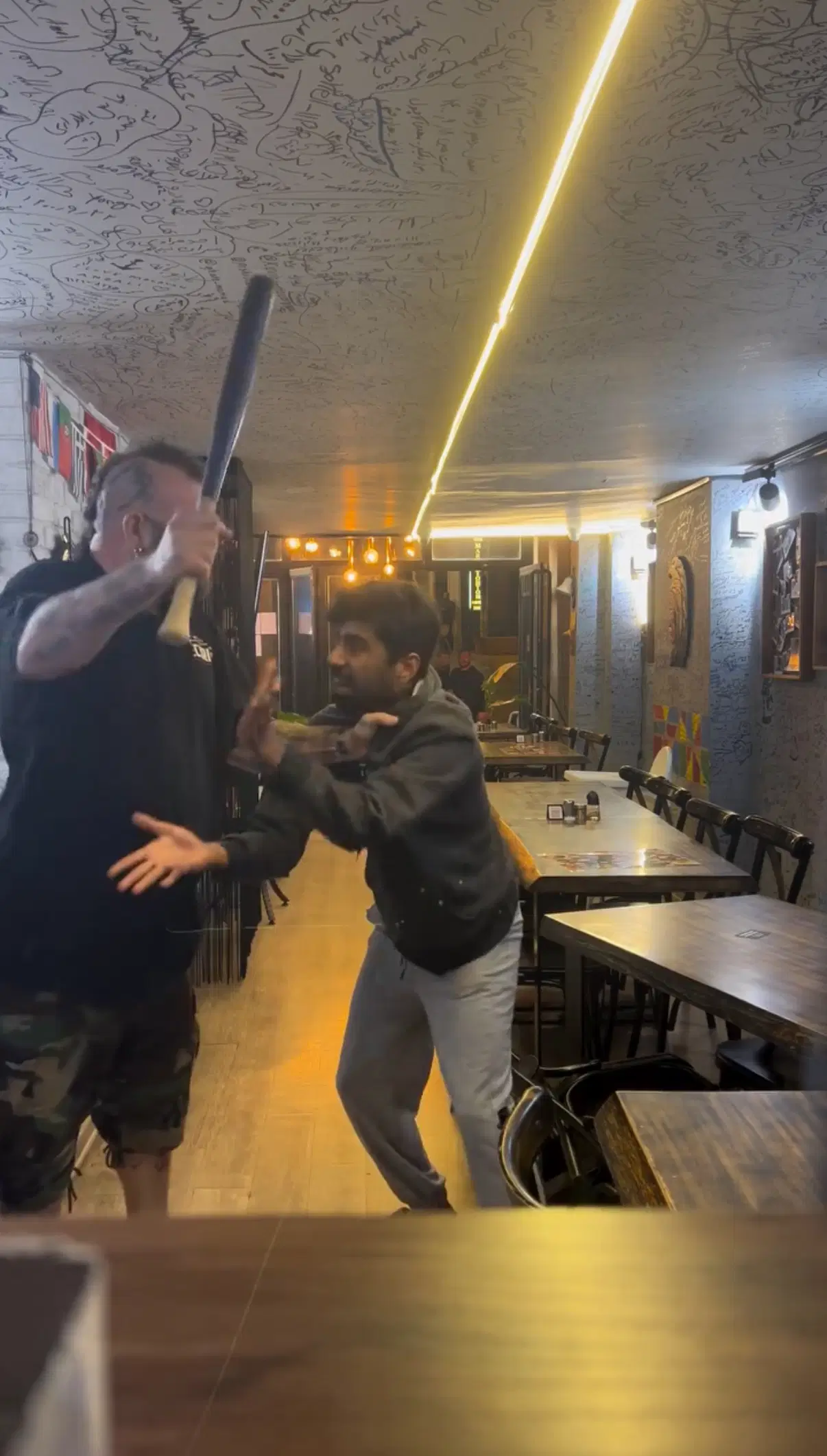 Çalışanı havaya kaldırıp yere çarpan Ünlü, daha sonra beyzbol sopasıyla defalarca vurdu. Dakikalarca süren saldırıyı kendi cep telefonuyla kaydetti.
